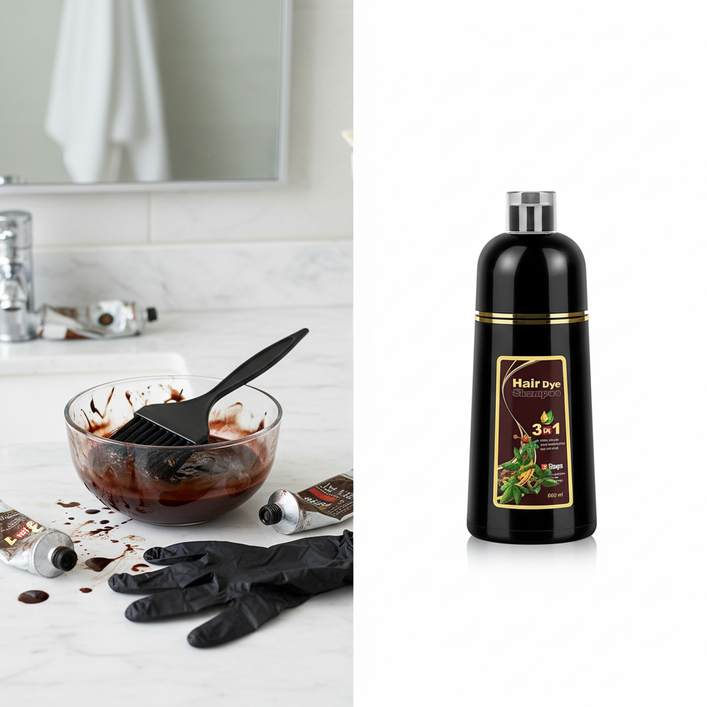 Presentamos el Hair Dye Shampoo. Una fórmula revolucionaria que deposita un color negro natural y vibrante mientras limpia y nutre tu cabello. Recupera tu color y tu confianza en un solo paso, directamente en tu ducha.